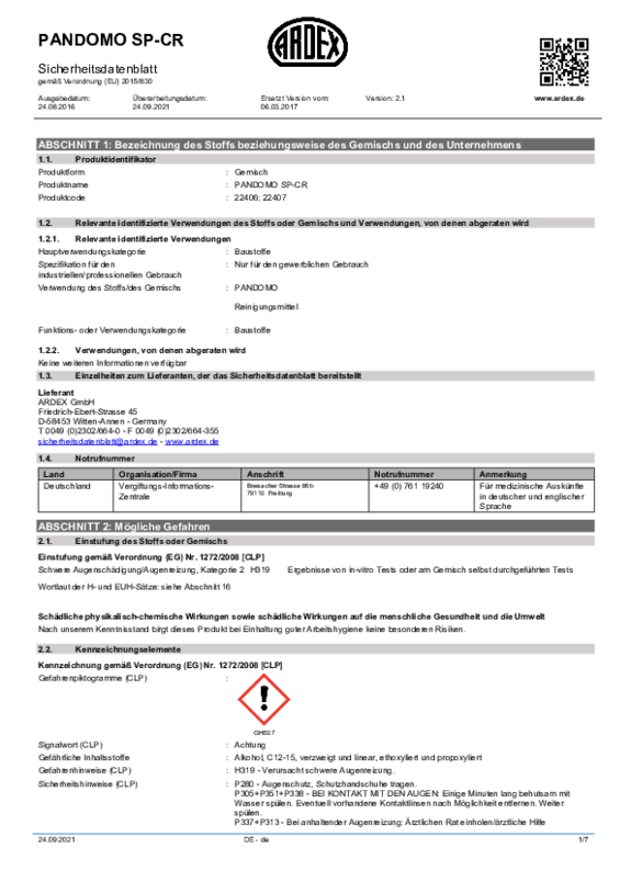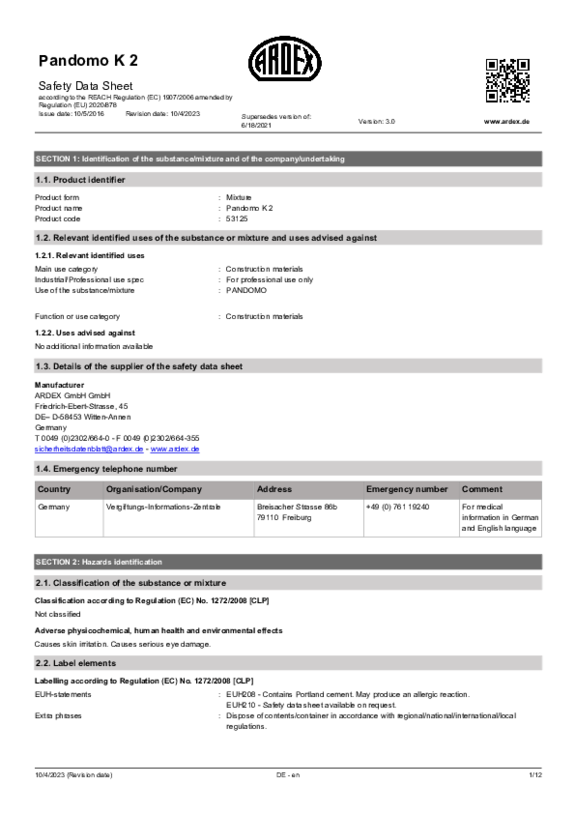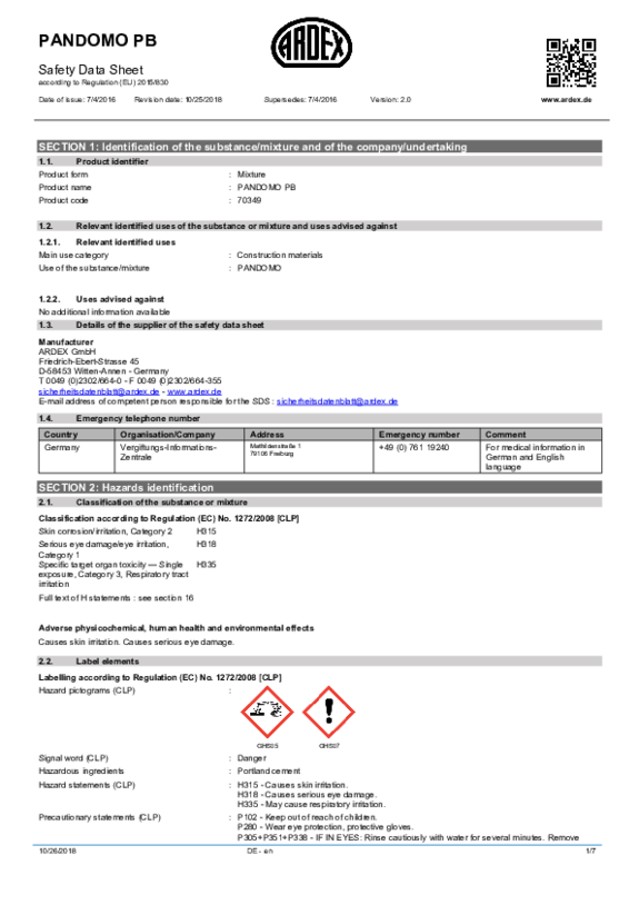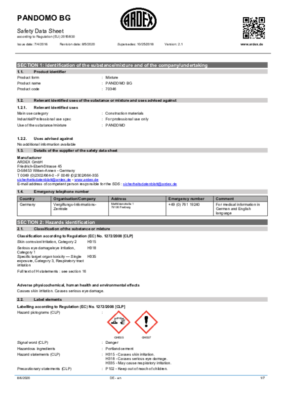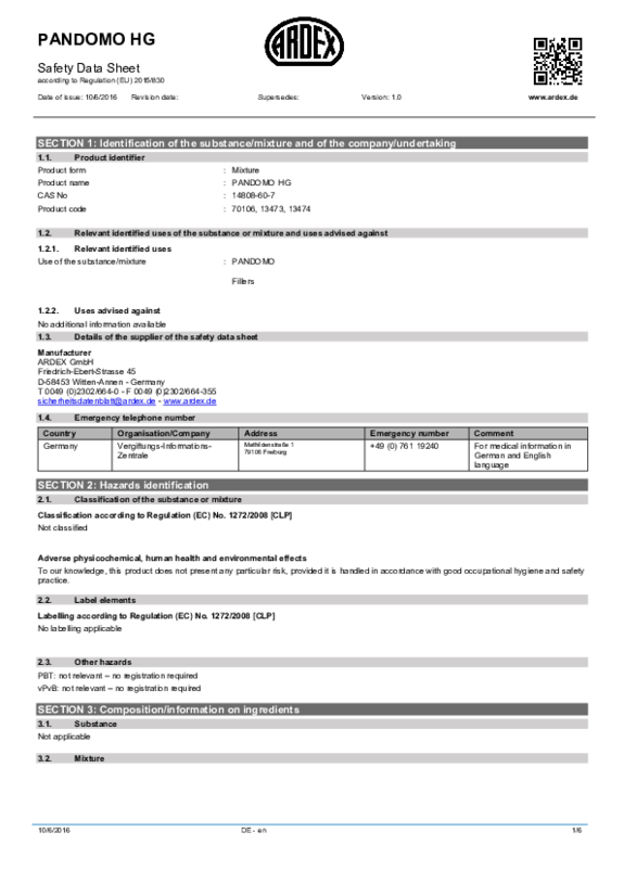 SDS PANDOMO CC No. 10 Oxyd-Ocker EN