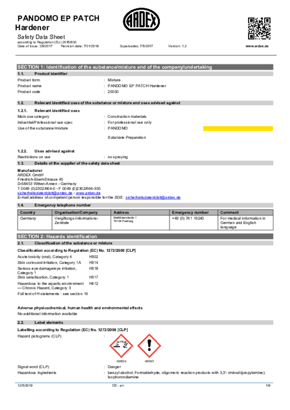 SDS PANDOMO EP Patch Hardener EN
