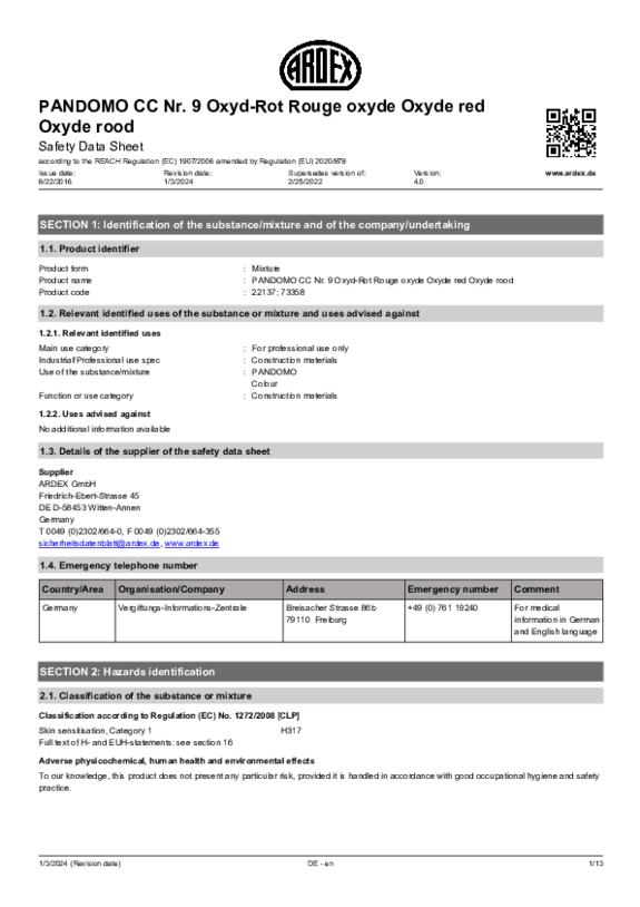 SDS PANDOMO CC No. 09 Oxide Red EN