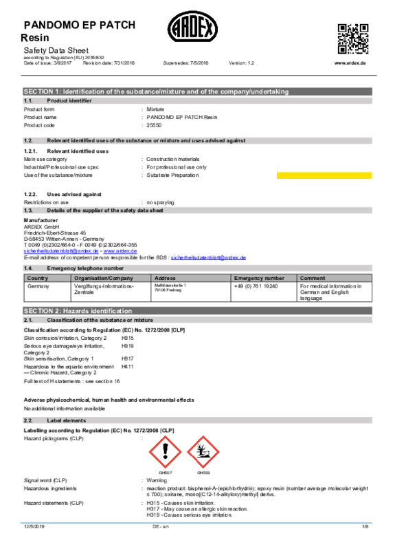 SDS PANDOMO EP Patch Resin EN