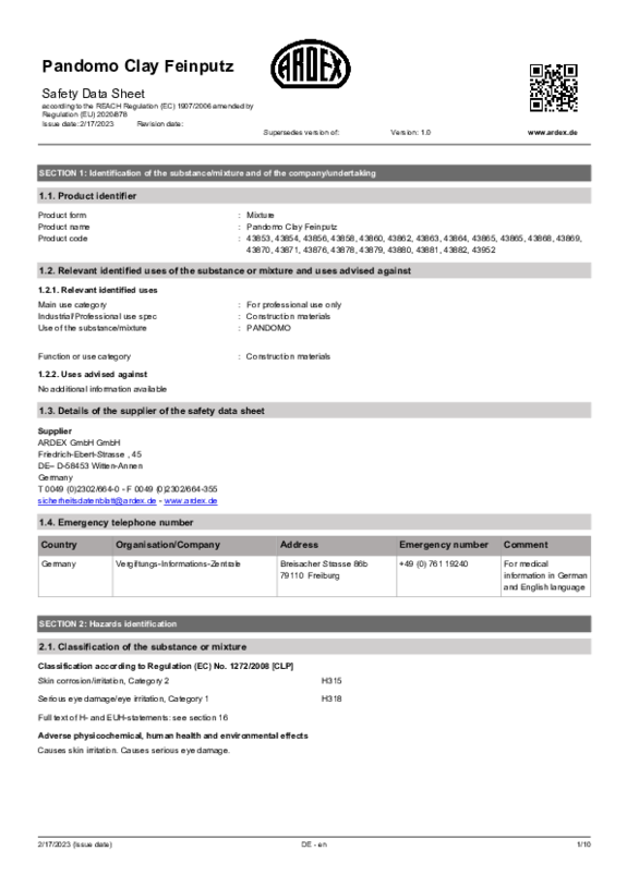 SDS PANDOMO Clay Finish EN