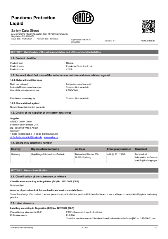 SDS PANDOMO Protection Liquid EN