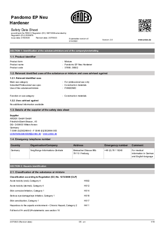 SDS PANDOMO EP New Hardener EN