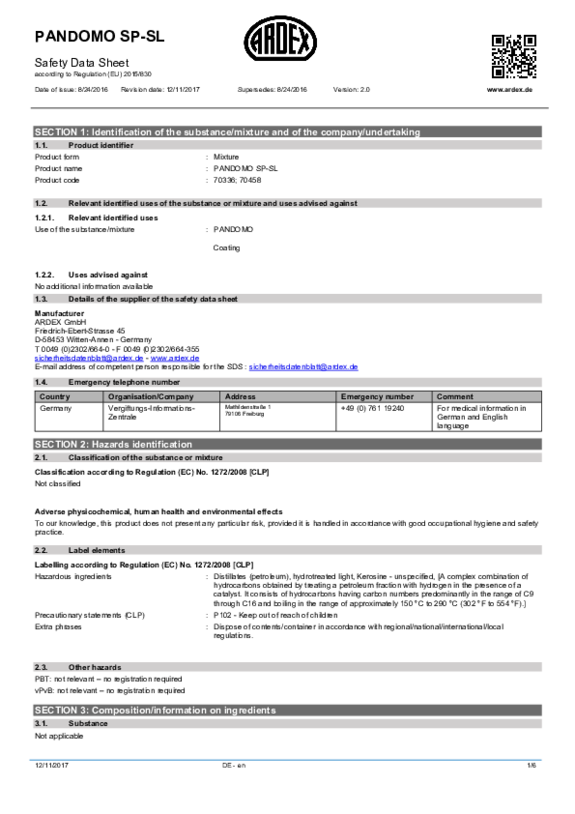 SDS PANDOMO Floor K1 EN