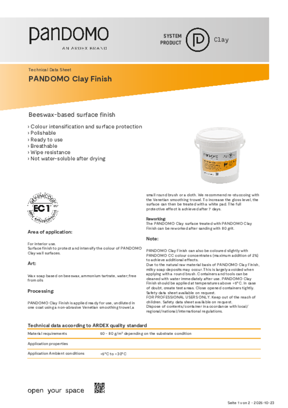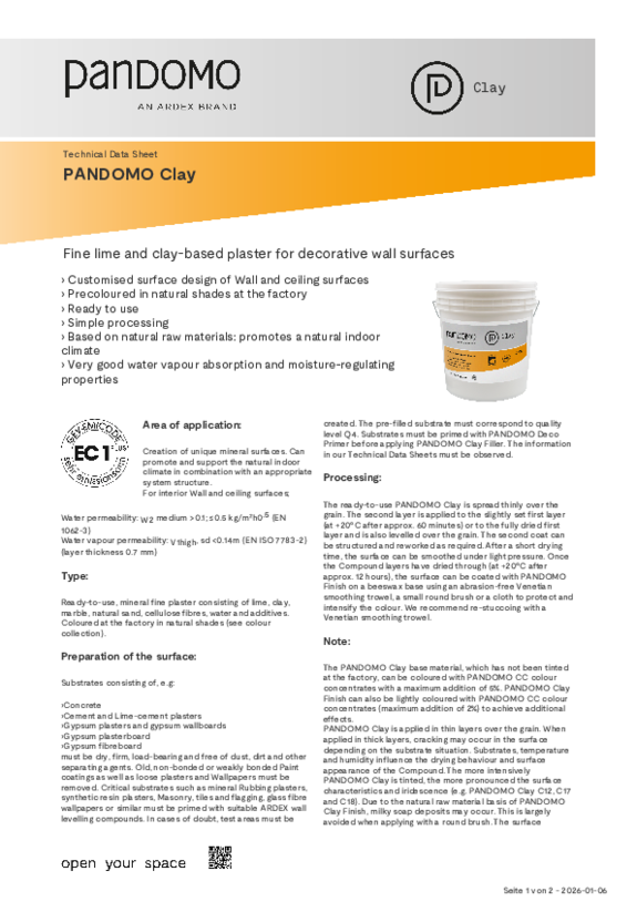 For the application of PANDOMO Clay and PANDOMO Wall, please contact the specialist painting or plastering company of your choice. PANDOMO flooring products may only be applied by trained companies. You can find a certified PANDOMO partner company in your area in the installer search.
